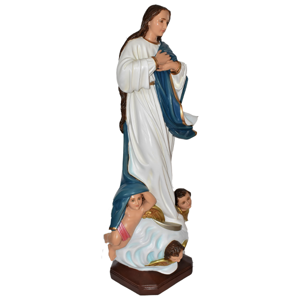 • MATERIALES: Hechas con una mezcla de resina poliéster, nuestras esculturas de más de 60cm son laminadas, lo que las hace lo suficientemente livianas para transportarlas y exhibirlas fácilmente, pero están hechas para ser fuertes y duraderas. Las imágenes pequeñas son fundidas rellenas. Cada uno está pintado a mano con pintura fina a base de oleo.